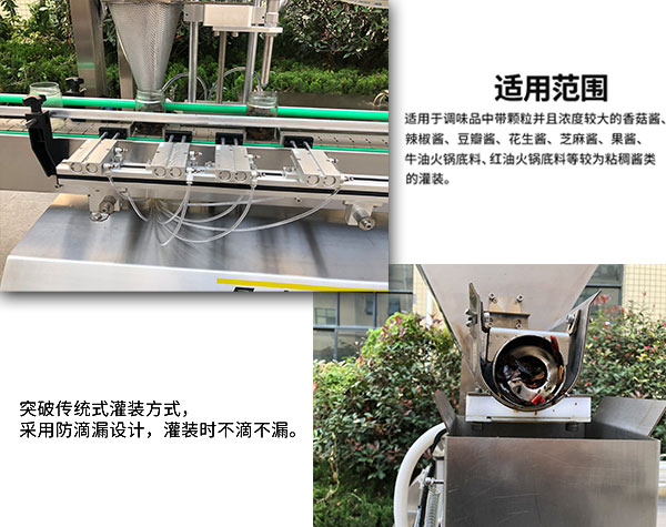 星火智能设备是一家专业打造各种智能灌装机械的源头厂家,自动化干辣椒酱灌装机仅是其中一款热门设备,它可适用于各种高粘度的辣椒酱、榨菜酱、海鲜酱、蟹黄酱、沙茶酱、香菇酱、牛肉酱、豆瓣酱、蒜蓉酱、果酱、肉酱等含颗粒、高粘度、易沉淀的半流体物料灌装。